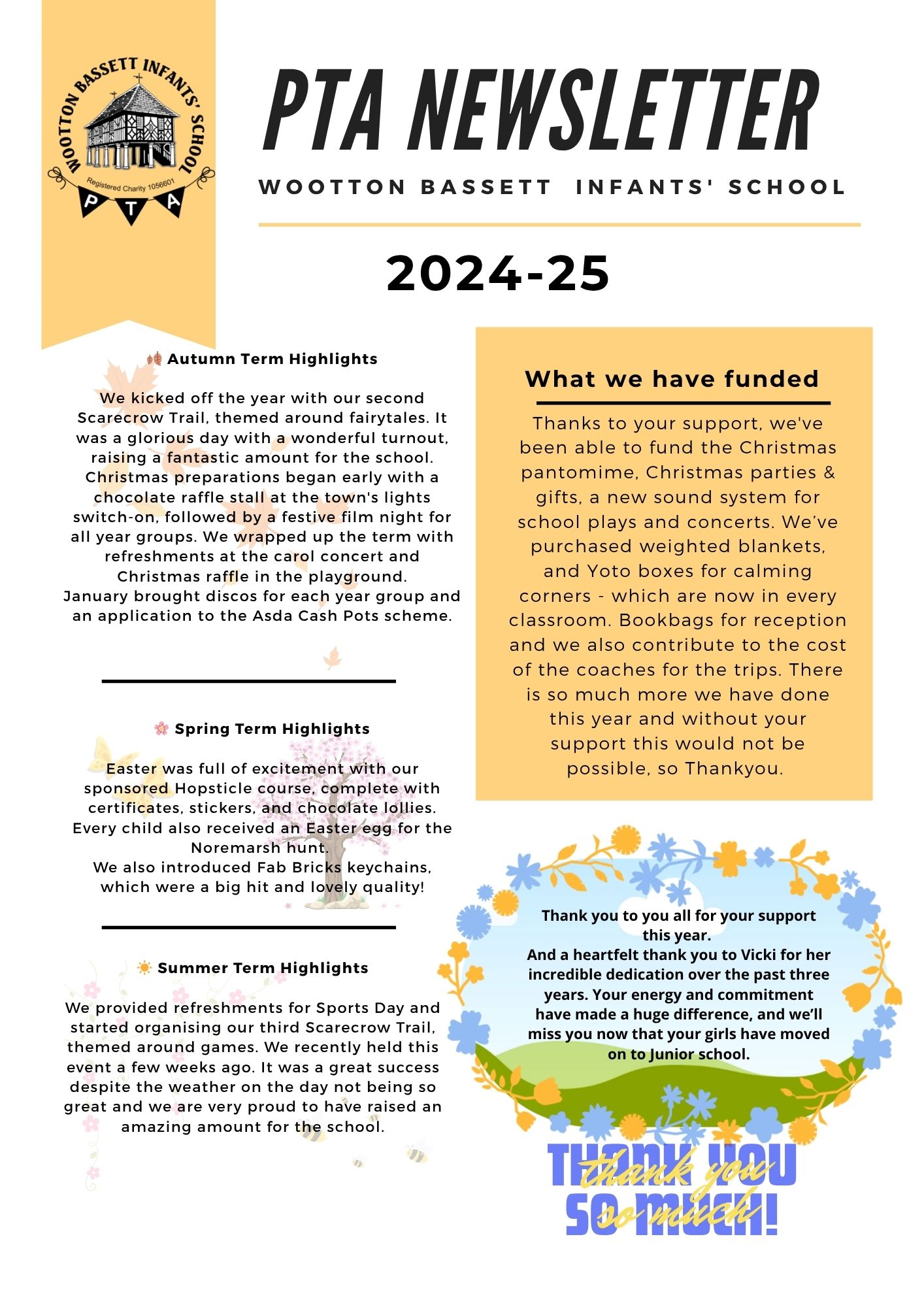 Wootton Bassett Infants’ School Parent Teacher Association (PTA) is a registered charity, run by volunteers. All parents, carers, guardians and staff are automatically members and are welcome to attend our meetings.