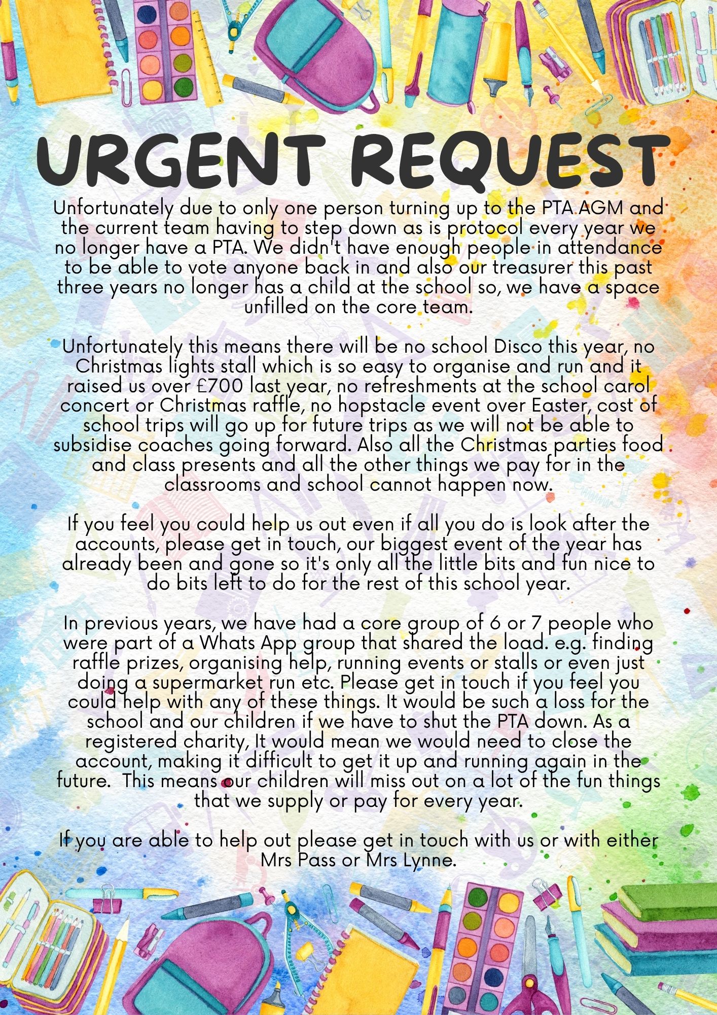 We have a core PTA committee, made up of the Chairperson, Co-Treasurers and Co-Secretaries. We also rely on plenty of helpers throughout the year to assist with our various events.